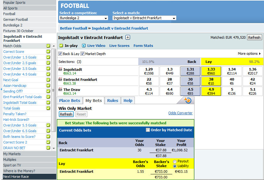 2 λεπτά μετά το 1-0 από τους γηπεδούχους έκλεισα τη θέση μου κάνοντας trade out και εξασφαλίζοντας κέρδη ανεξαρτήτου αποτελέσματος ...